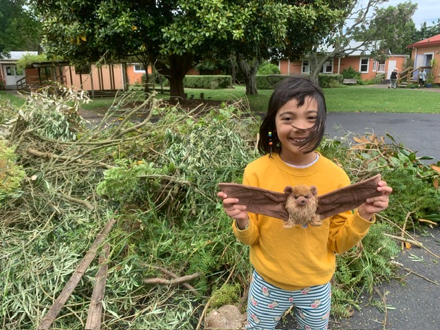 I took Paora on three outings. First, he came to my school ‘Working Bee’, and helped everyone tidy the school grounds. Then, my dad and I took him to an exhibition at our local museum.